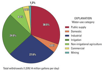 Water is life. Water is the most common liquid found all over the world. It plays the main role for survival of every living creature on planet. Around 97.3% of earth is covered by water. Among them 2.7% is fresh water available on earth and 0.02% water is available in ponds, lakes and rivers. It is used for many purposes such as drinking, cleaning, washing, cooking and so on. How ever it is also use for agriculture purpose and industrial purpose. According to the chart given below 1578.14 million gallons of water is used daily.